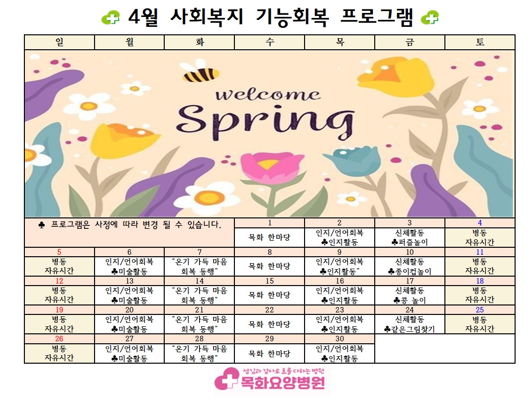 2026년 04월 기능회복 프로그램입니다.